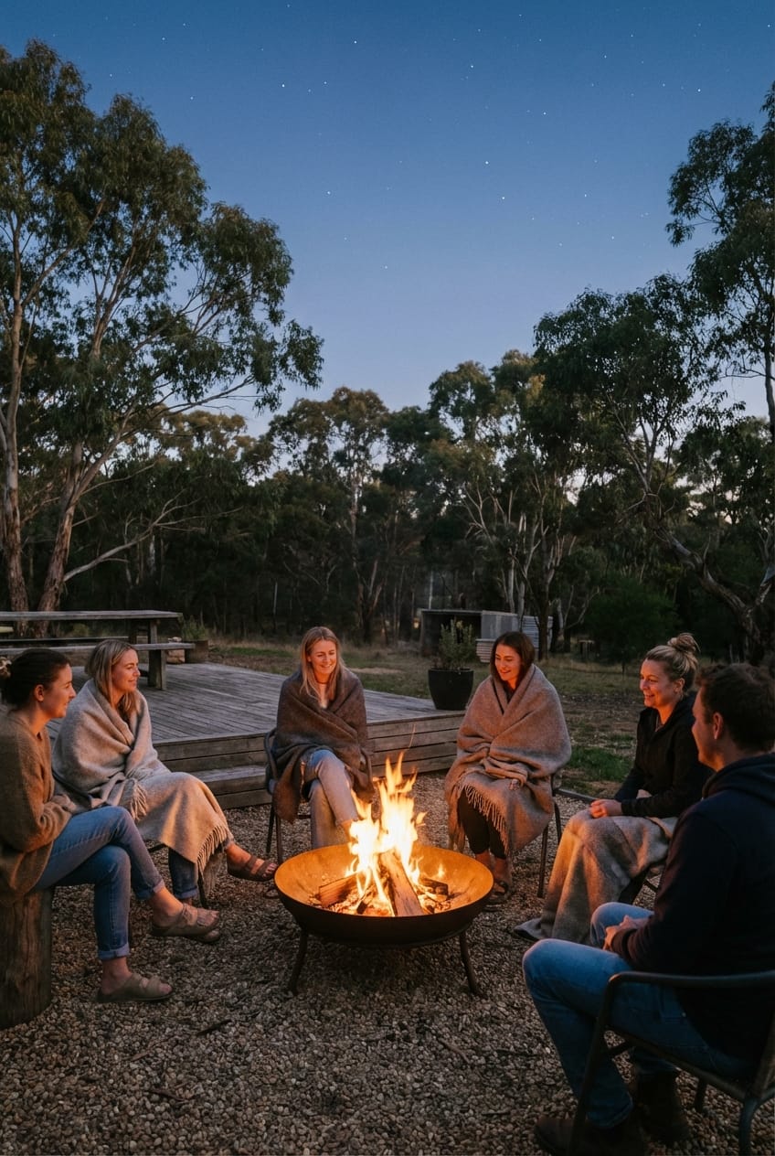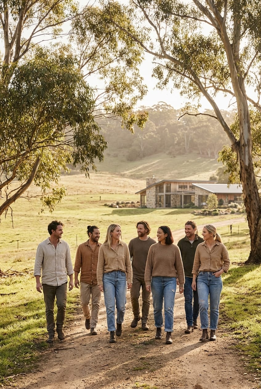 Kangaroos graze at sunset, parrots move through the trees, and the only sounds at night are frogs on the lake and the occasional owl calling through the valley. A meandering creek runs through the land, and hidden paths lead to quiet corners perfect for reflection or stillness.
