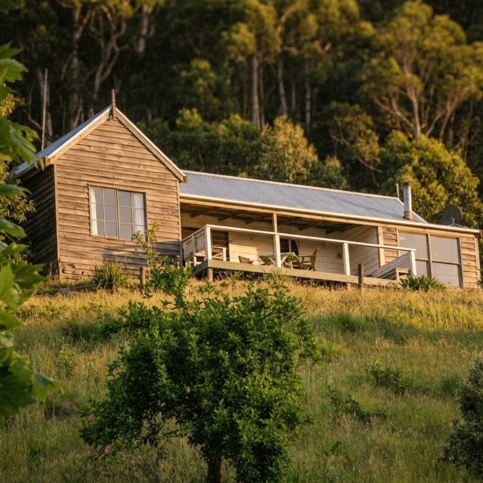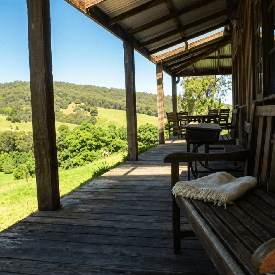 Surrounded by 60 acres of rolling farmland, rainforest pockets, lakes and native bushland, the property offers panoramic valley views, long timber verandahs and cosy log fires with no traffic, no city noise, and space to truly exhale.