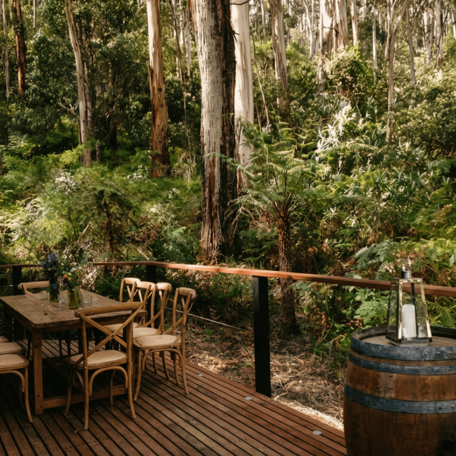 Just 90 minutes from Melbourne and only 15 minutes inland from Lorne and the beaches of the Great Ocean Road, this retreat is set within the quiet expanse of the Otways.