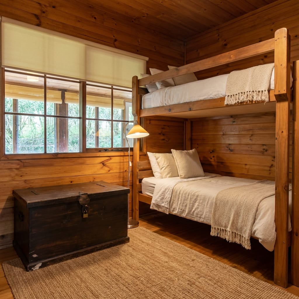 A relaxed and communal room featuring bunk beds, designed for those drawn to a shared retreat experience.