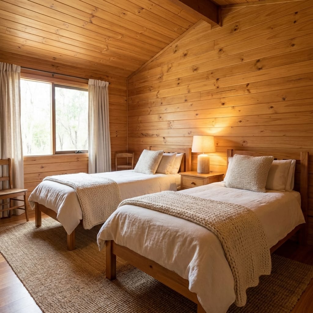 Offering comfort and ease, this space balances privacy and companionship within the retreat setting.