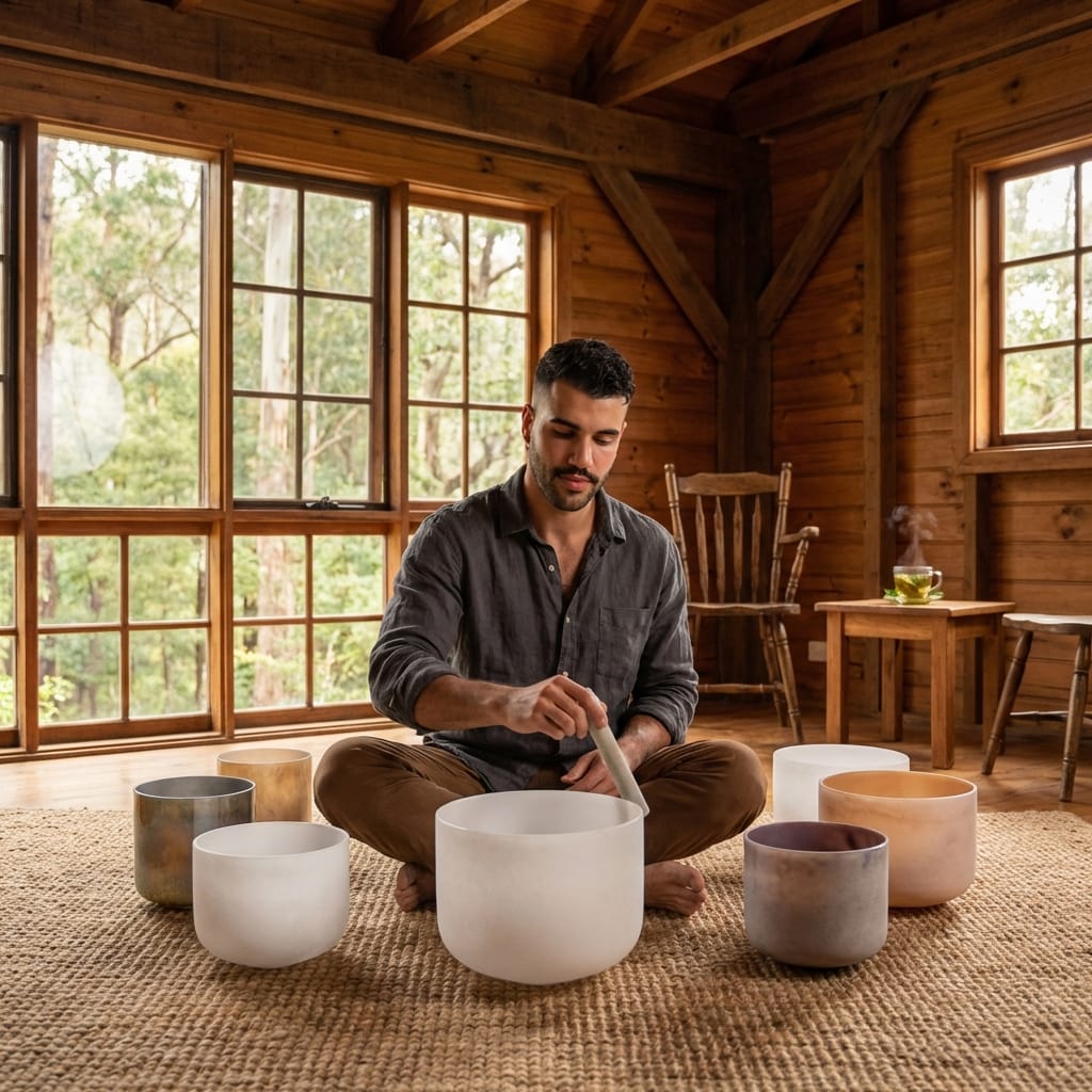Through intentional sound healing and frequency work, we gently clear stored emotional charge held in the body and biofield. This helps release subtle stress imprints that keep you looping the same tension patterns and creates space for calm and clarity to return.